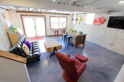 Eclectic & colorful, totally-furnished, home on rolling 'fantasy' hill with a creek and firepit. Totally private hill and retreat area. Fully fenced yard! Hardwoods, pinball, pool table, jukebox. Great bathrooms! Fully stocked kitchen with all appliances. Includes all linens. 55 birdhouse 'museum' on lighted vintage wood wall. Premium comfort beds in all bedrooms.